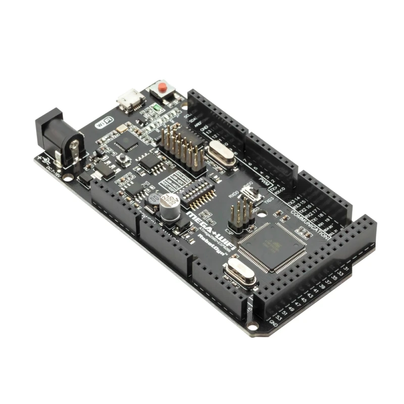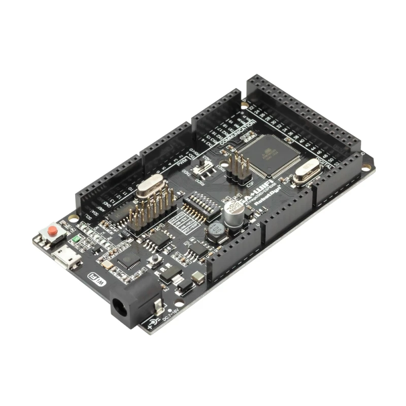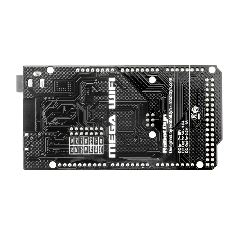 Full integration on one board: Mega R3 ATmega2560 and WiFi ESP8266 with memory 8Mb. All of the modules can work together or each separately. And everyone has their own pinout headers.