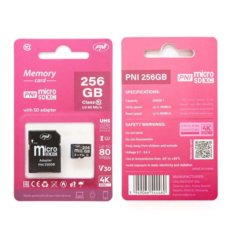 PNI MicroSDXC 256GB mälukaart (SKU: PNI-MSD256GB) on suure jõudlusega salvestuslahendus, mis on loodud usaldusväärseks andmete jäädvustamiseks ja kiireks edastamiseks nõudlikes keskkondades.
