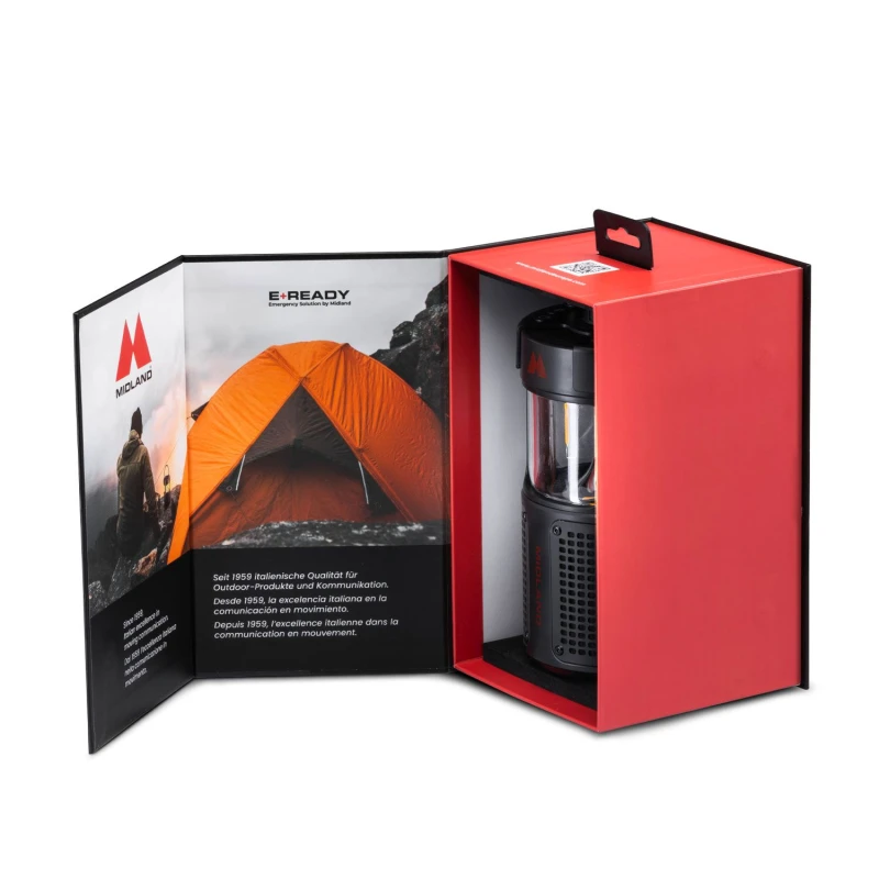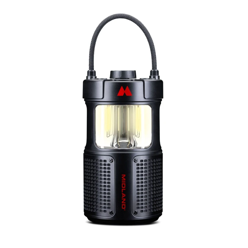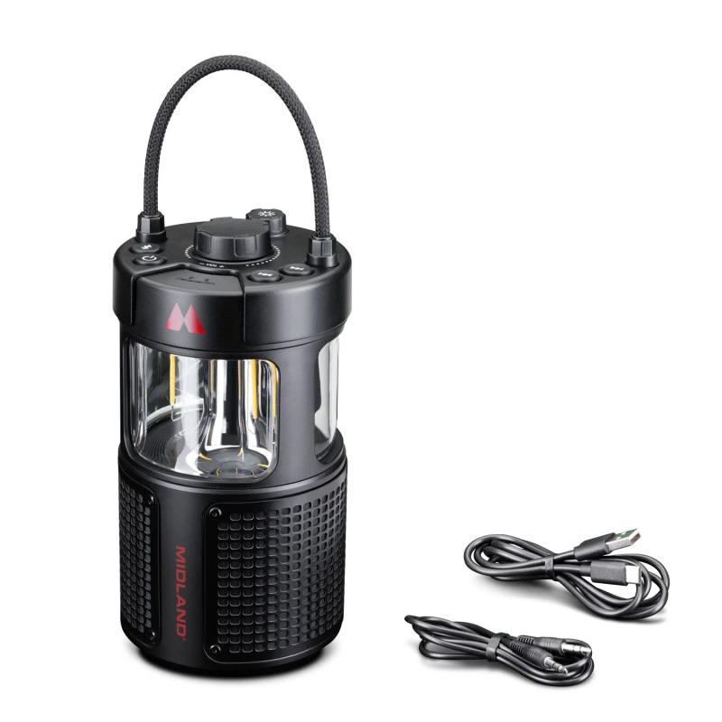 Midland ER LANTERN (C1717) on mitmekülgne 3-ühes lahendus, mis on loodud välitingimuste harrastajatele ja hädaolukordadeks valmisolekuks, ühendades 360° LED-laterna, 20 W Bluetooth-kõlari ja 5200 mAh akupanga üheks kaasaskantavaks seadmeks.