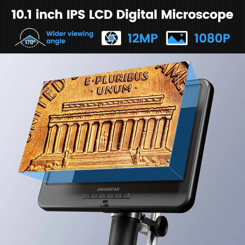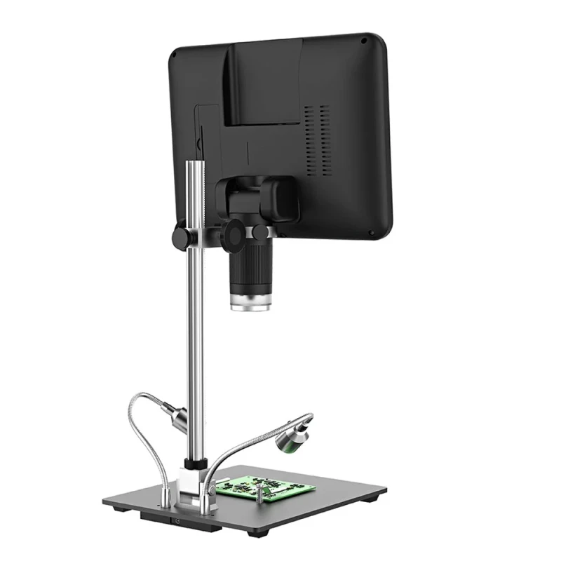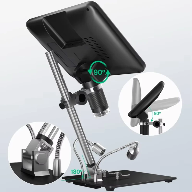 Mikroskoop on varustatud 10.1 tollise ekraaniga (1280x800). Kaks liikuva kaelaga led valgustit, mis aitavad erinevates valgustingimustes stabiilsemaid tulemusi tekitada.