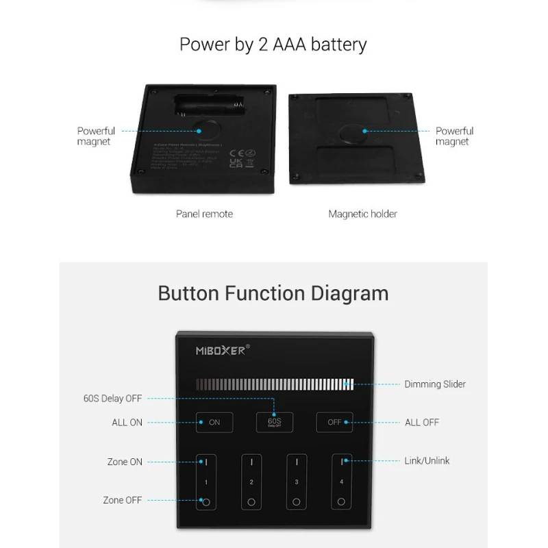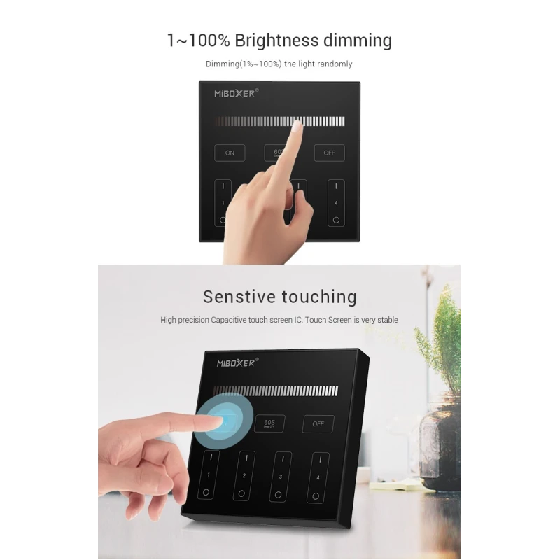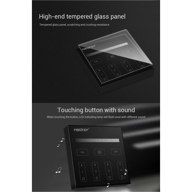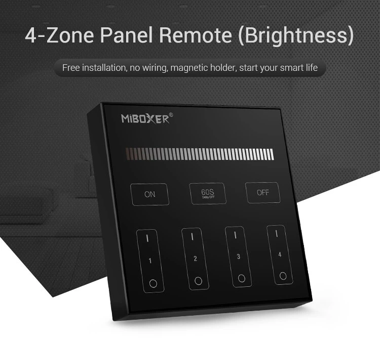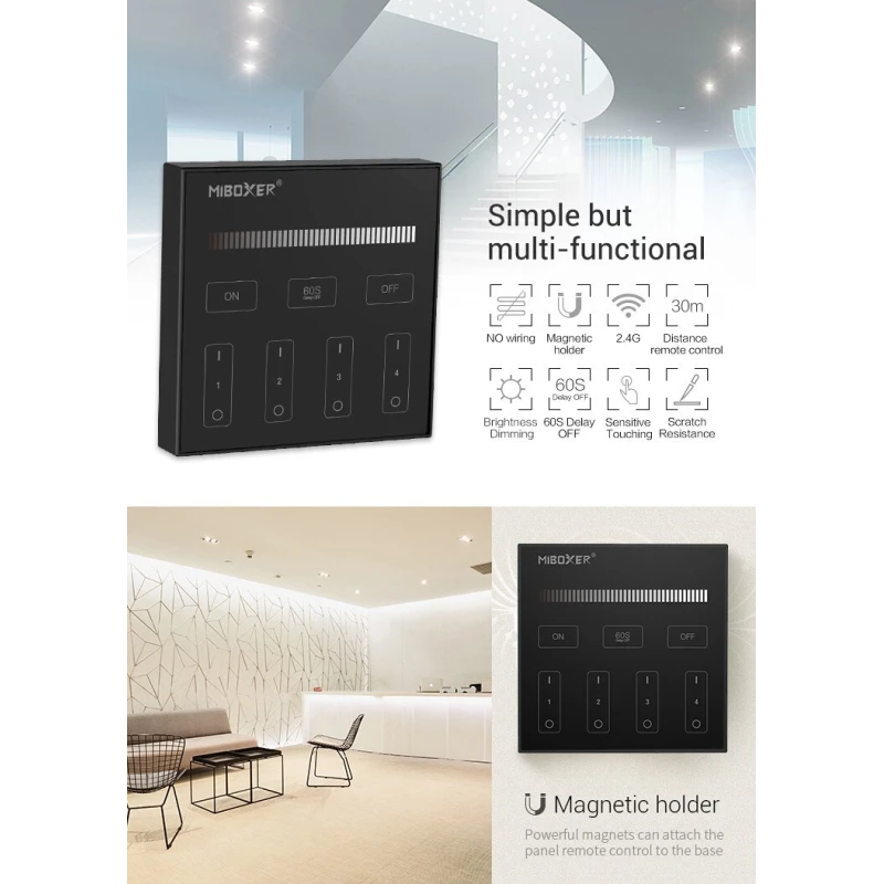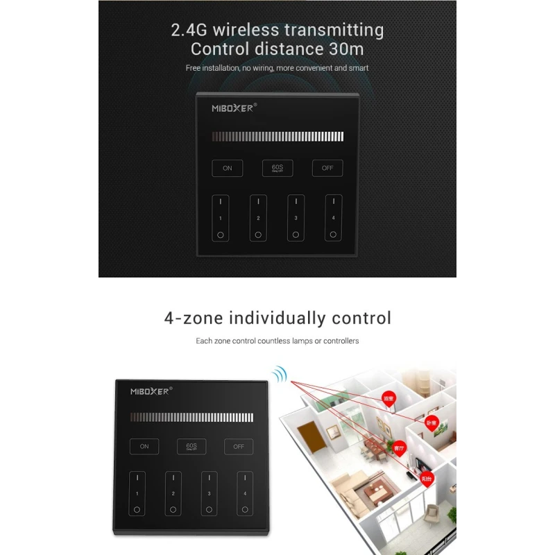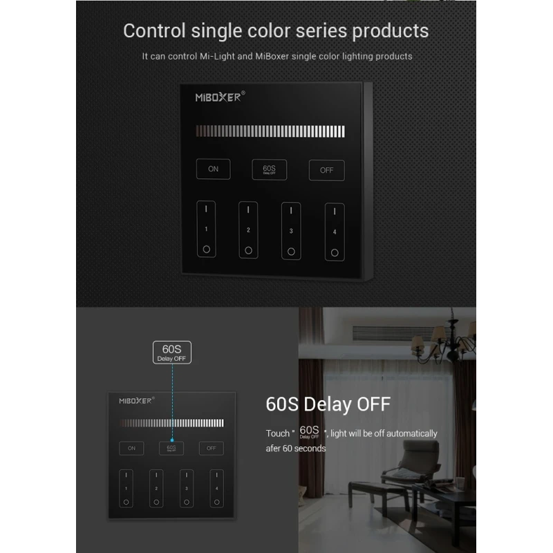 MiBoxeri B1 seeria juhtimise kontrolleril on 4-tsooni mis on eraldi juhitavad. Antud kontrolleri abil saab keerada led-lindi eredust, puutetundliku pinna abil.