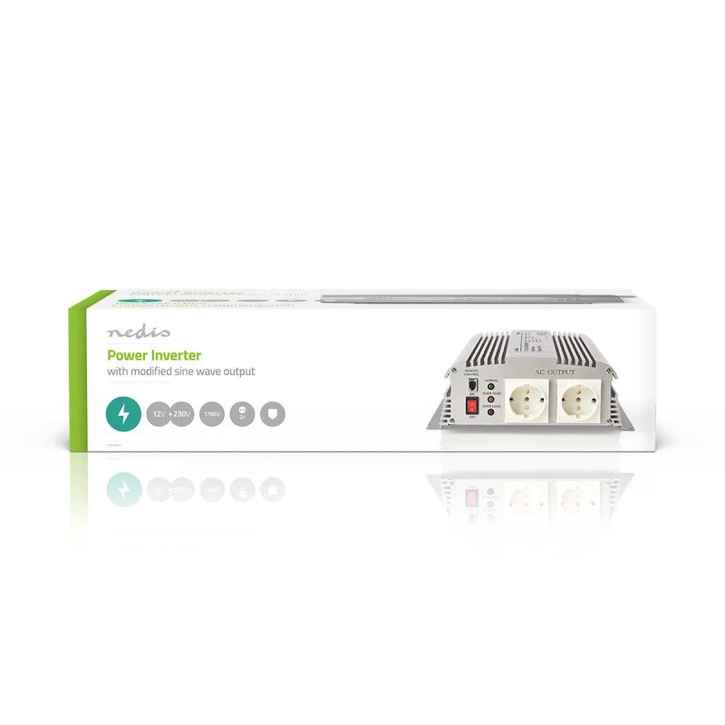 Väljundpinge ei ole sinusoidne vaid nelinurkne! Sobib kasutamiseks enamikele seadmetele toitepingega 230VAC. Inverter on tavaliselt valmistatud alumiiniumkorpusega, et tagada vastupidavus ja soojuse hajutamine. See sisaldab kruviklemme sisendühenduste jaoks ja sellel võib olla ECE R10 kinnitus, mis näitab vastavust autotööstuse elektromagnetilise ühilduvuse standarditele.