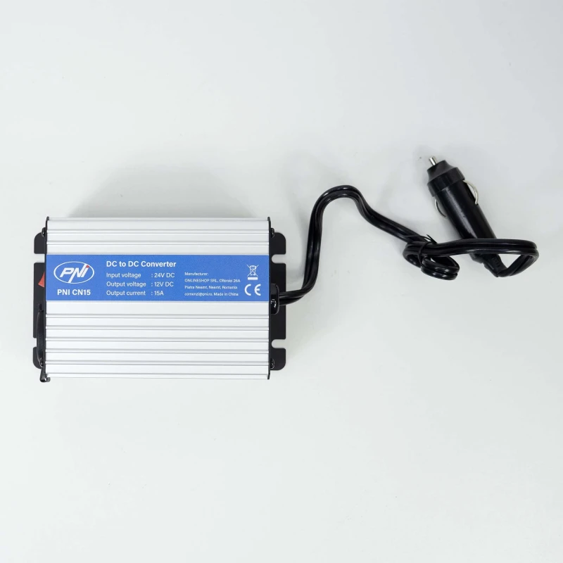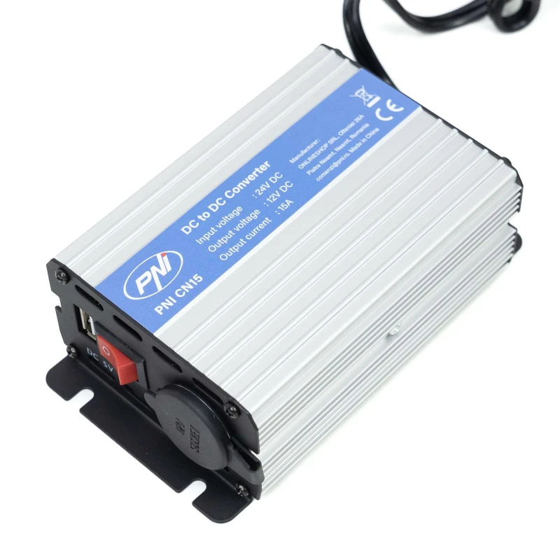 PNI CN15 pingemuundur on praktiline lahendus sõiduki pinge alandamiseks, muutes 24 V alalisvoolu sisendi stabiilseks 12 V alalisvoolu väljundiks. See on loodud standardsete 12-voldiste seadmete ohutuks toiteks raskeveokite 24 V süsteemides.