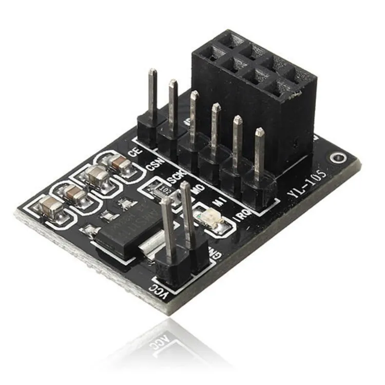 See NRF24L01 juhtmevaba transiiveri pesaplaadi adapter võimaldab lihtsalt ja turvaliselt ühendada 3.3V NRF24L01 mooduli 5V toitega mikrokontrolleriga, näiteks Arduinoga.