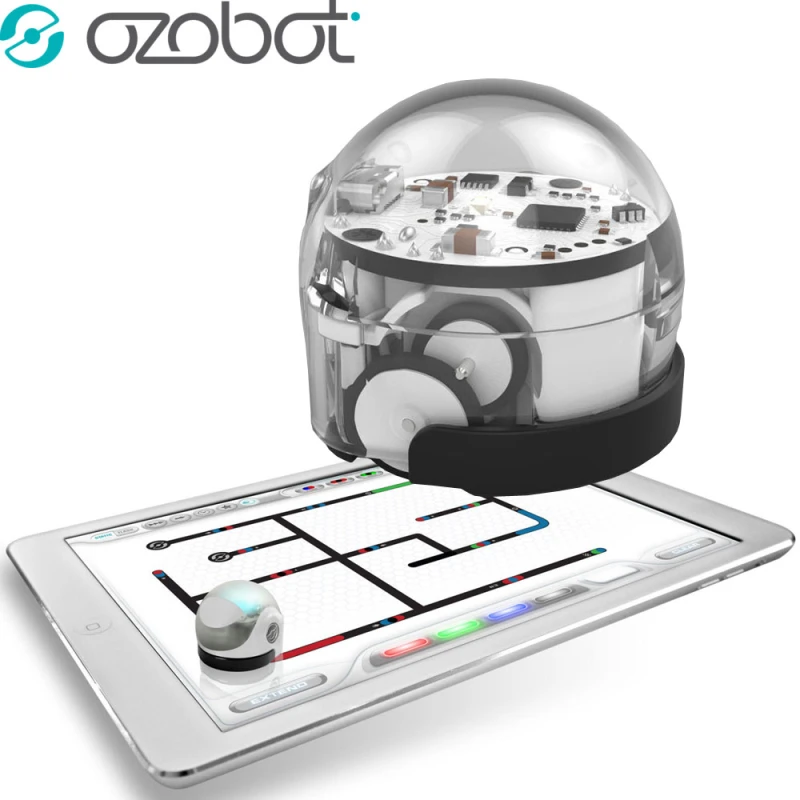 Ozobot on tänaseni väikseim robot. Mõneruutsentimeetrisel robotil on kaks mootorit ja viis sensorit ning värvilised tuled. Robotit saab õpetada vastavalt maha joonistatud või prinditud värvijoontele muutma kiirust, suunda ja liikumisstiili. Tahvelarvutis saab kasutada äppi OzoBlockly. Lisaks meeldib lastele see, et robotit saab enne liikuma panemist disainida (erinevad kiivrid). Programmeerimiseks läheb vaja sinist, musta, rohelist ja punast värvi vildikat.