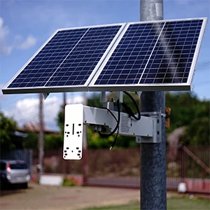 Päikesepaneelil on mitmeotstarbeline kinnitusklamber koos tarvikutega, mis võimaldab paigaldust nii seinale kui ka kõrgele postile.