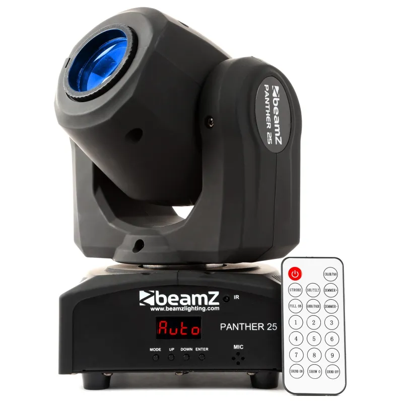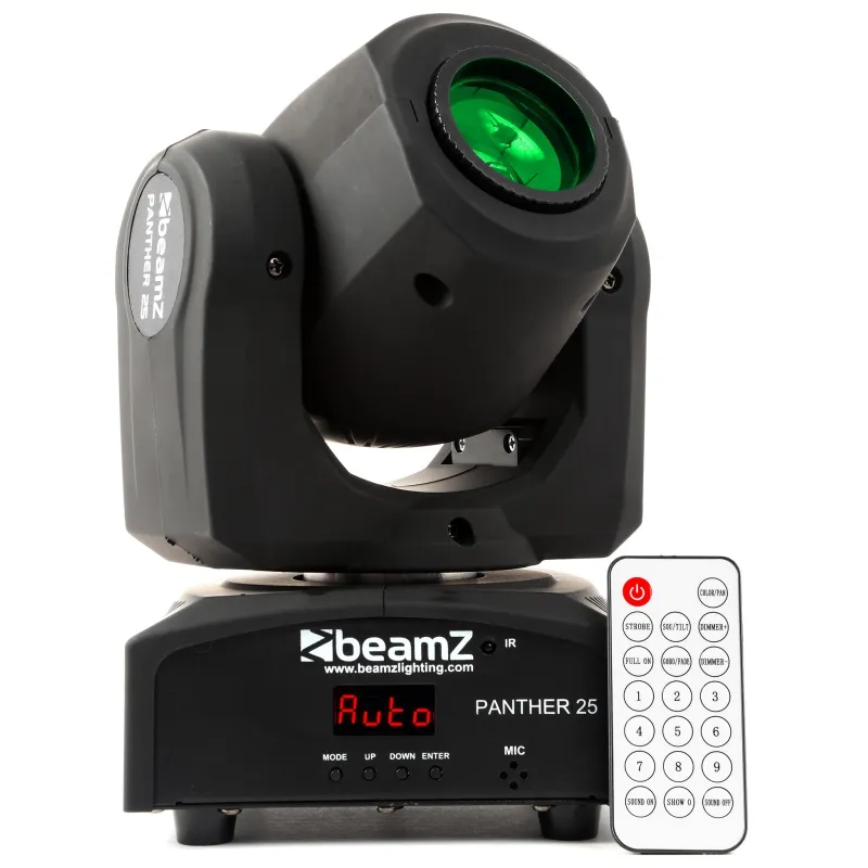 Panther Moving Head on väga kompaktne valgusti, mis kasutab võimsat 12W CREE LED allikat, et pakkuda eredat, fokuseeritud 12° valgusvihku. See seade on loodud igakülgseks loominguliseks juhtimiseks spetsiaalsete värvi- ja goborataste kaudu.