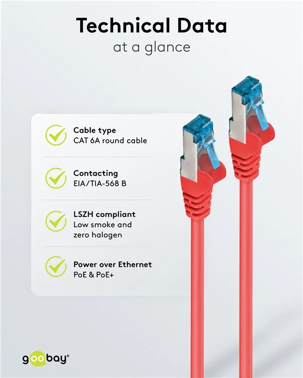 See kvaliteetne Goobay CAT 6A patch-kaabel on loodud suure jõudlusega 10 gigabitise Etherneti võrkude jaoks, pakkudes usaldusväärset andmeedastust ribalaiusega kuni 500 MHz.
