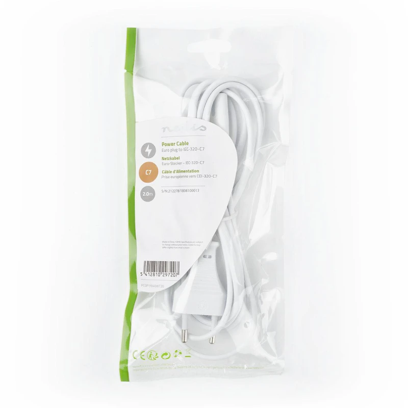 230VAC toitejuhe Euro otse - C7 otse 2m Valge