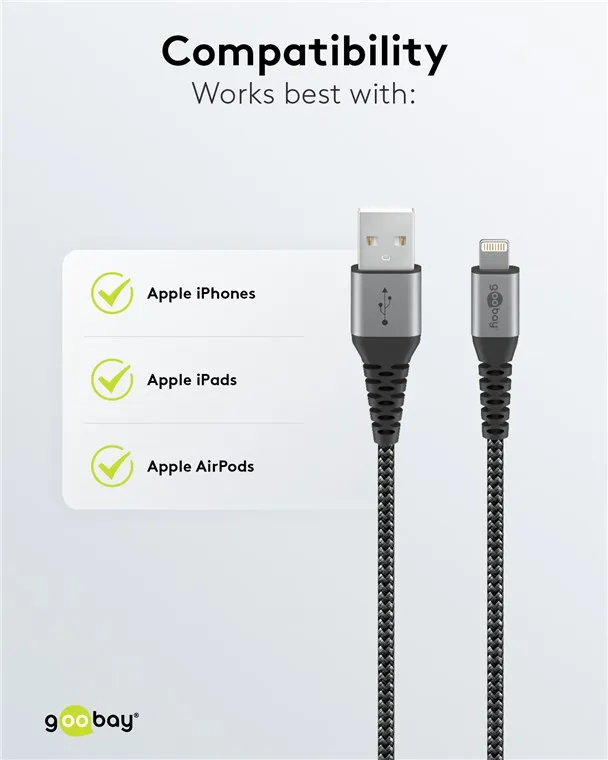 Compatible with the following models:Apple iPhone:iPhone 14, iPhone 14 Plus, iPhone 14 Pro, iPhone 14 Pro Max, iPhone 13 Pro, iPhone 13 Pro Max, iPhone 13 mini, iPhone 13, iPhone 12 Pro, iPhone 12 Pro Max, iPhone 12 mini, iPhone 12 iPhone 11 Pro, iPhone 11 Pro Max, iPhone 11, iPhone SE (2nd generation), iPhone XS, XS Max iPhone, iPhone XR, iPhone X, iPhone 8, iPhone 8 PlusApple iPad:iPad Pro 12,9" (Gen. 3, 4, 5, 6), iPad Pro 11" (Gen. 1, 2, 3, 4), iPad Air (Gen. 4, 5), iPad (Gen. 10), iPad mini (Gen. 6)Apple AirPods, AirPods Pro, AirPods with wireless charging case (Gen. 2)