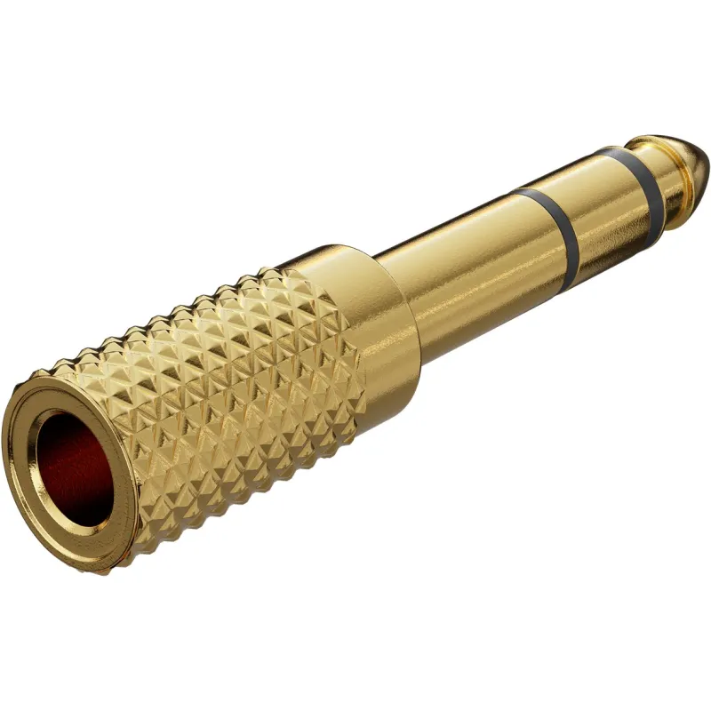 The small adapter for a great sound experience. The audio adapter is the all-rounder for connecting headphones with a 3.5 mm AUX cable to hi-fi systems or connecting electric instruments such as electric guitars to an amplifier or effects unit via a 6.35 mm jack. With its compact, gold-plated metal design, the adapter is an eye-catcher and a handy solution at home, in the studio or on stage.
