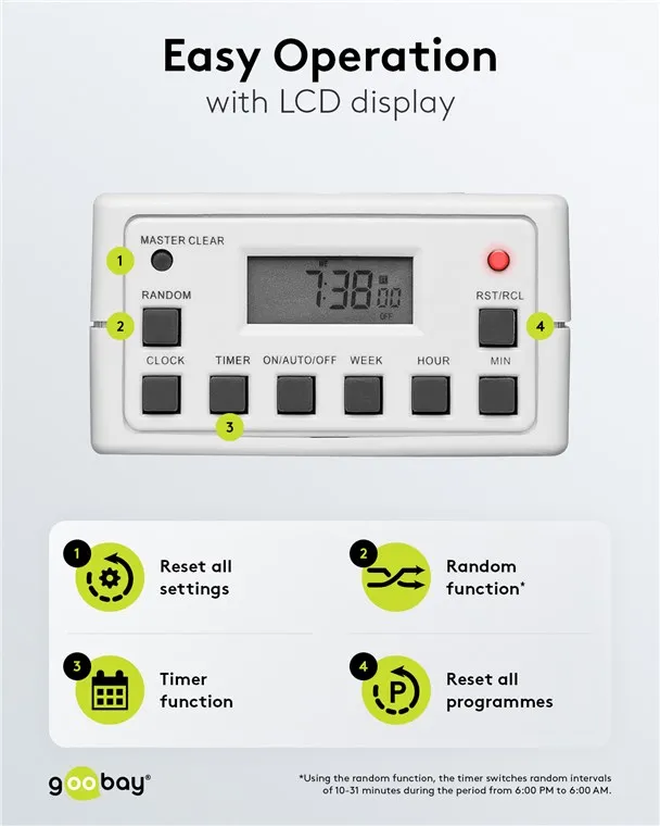 Digitaalne väli nädalataimer, 10-programmi IP44 3680W