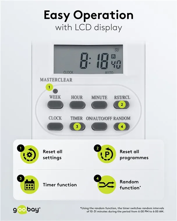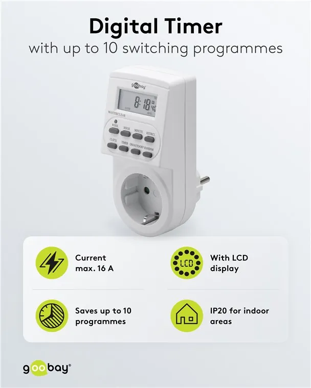 Digitaalne nädalataimer, 16-programmi 230V 3680W 16A