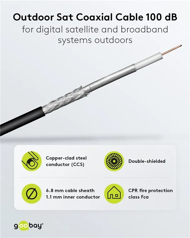 100 dB Outdoor SAT Coaxial Cable, Double Shielded, CCS
