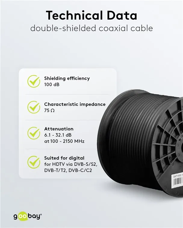 100 dB SAT Coaxial Cable, Double Shielded, Cu