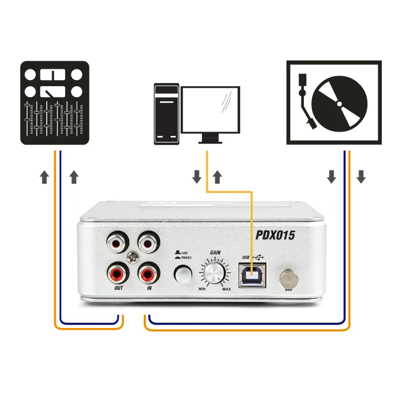 PDX015 USB fono eelvõimendi on kõrge kvaliteediga USB fono-/liin eelvõimendi. See on ideaalne ekvalaiser MM-süsteemidele, millel on palju erifunktsioone, näiteks võimalus kasutada plaadimängijat USB kaudu arvutiga, aga ka liiniväljundi kaudu võimendiga, millel puudub fono sisend, kasutades kaasasolevat tarkvara.
