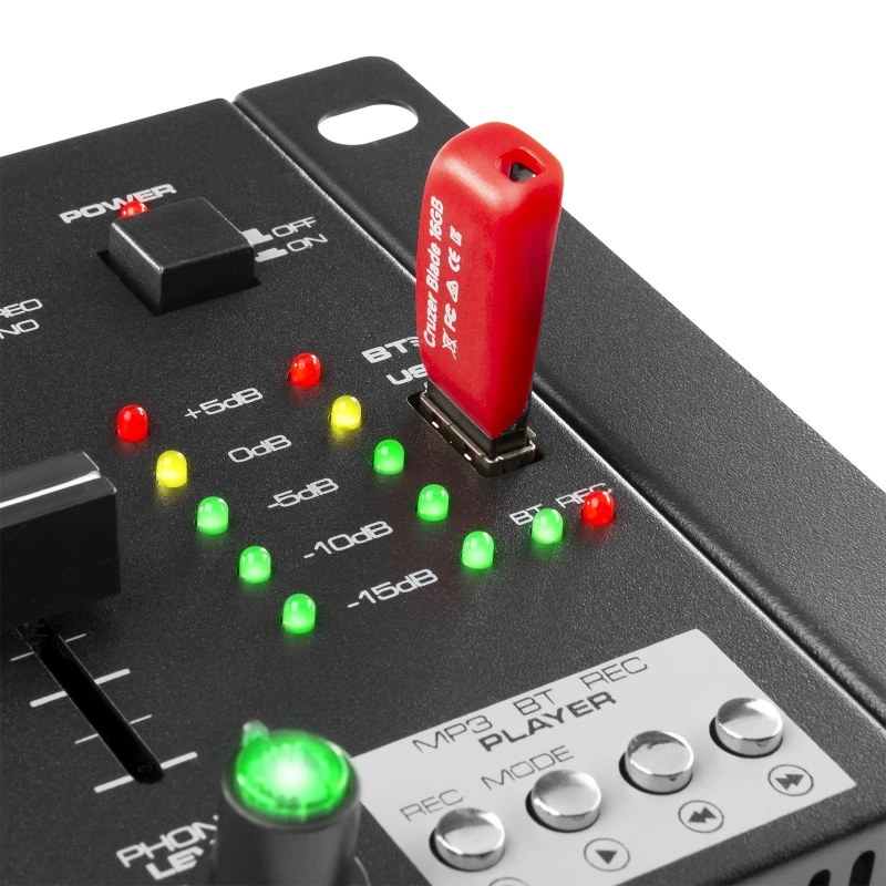 BT-tehnoloogia võimaldab teil koheselt lisada oma DJ-sessioonile juhtmevaba muusika voogedastuse. Salvestusfunktsioon võimaldab salvestada otse USB-mäluseadmele.