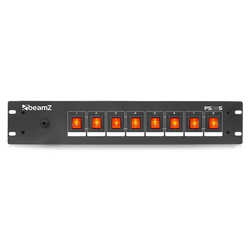 PS08S on 220-240Vac lülituspaneel, millel on 8 individuaalselt lülitatavat Schuko pistikupesa ja valgustitega lülitid.