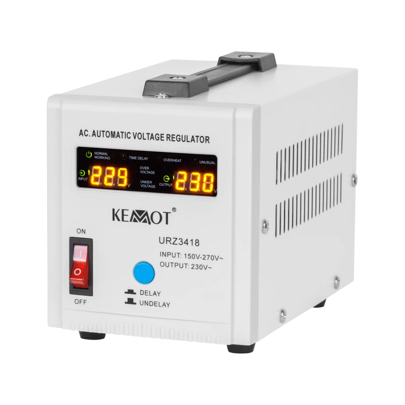 Stabilisaatori disain põhineb trafol, mis tagab seadme stabiilse töö. DELAY funktsioon Kui vajate pingestabilisaatorit seadmetele, millel on suur hetkeline käivitusvool, valige mudel, mis on varustatud DELAY käivitusviivituse funktsiooniga. KEMOT SER-500 on varustatud DELAY käivitusviivituse nupuga vahemikus 6 kuni 180 sekundit, mis vähendab kahjustuste ohtu, kui sellega ühendatud seadmetel on suur hetkeline käivitusvool.