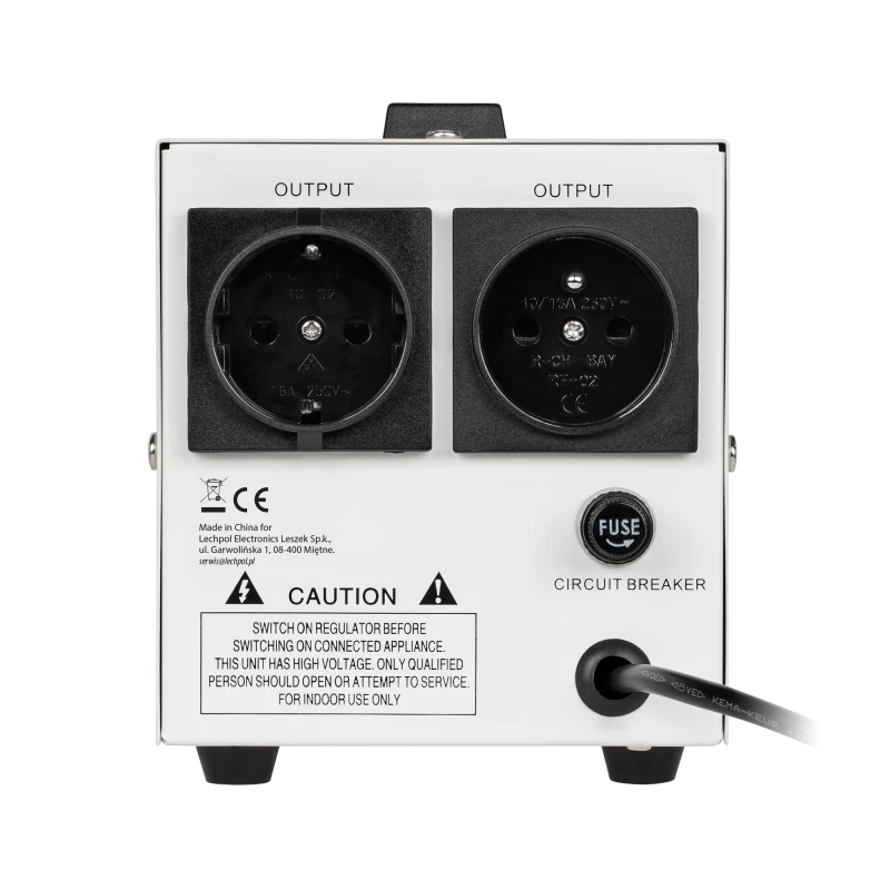 KEMOT SER-500 Automaatne pingestabilisaator Kuigi pinge Poolas on 230 V, on see sageli ebastabiilne. See võib põhjustada seadmete ootamatuid väljalülitusi või ebastabiilset tööd, mis vähendab elektroonikaseadmete eluiga. Seetõttu tasub selliste olukordade vältimiseks osta KEMOT SER-500 automaatne pingestabilisaator. Kaitse oma seadmeid pingekõikumiste eest. Sõltumata võrgukoormusest ja väljundpinge kõikumistest hoiab KEMOT SER-500 stabilisaator seda 230 V ±3% juures, võimaldades kõigil seadmetel tõhusalt töötada, sealhulgas neil, mis on tundlikud vooluvõrgu kvaliteedi suhtes. Reguleerimine on automaatne, mis tagab väljundpinge suure täpsuse.