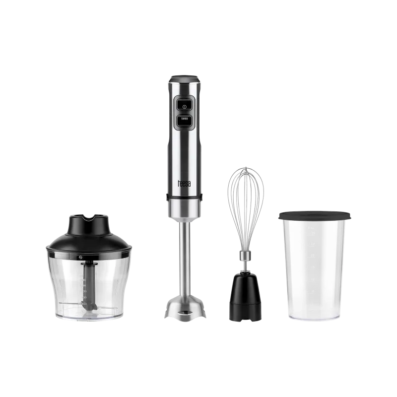 Teesa saumikser on seade, mis peaks olema igas köögis. Teesa TSA3507 mudel on komplekt, mis sisaldab lisaks klassikalisele segamistarvikule ka hakkijat ja visplit. Tänu sellele saad valmistada mitte ainult värskendavaid kokteile või tervislikke kreemsuppe, vaid ka hakkida köögivilju salati jaoks või vahustada koort magustoidu jaoks. Kasutage täielikult ära võimalused, mida Teesa blender teile annab – ja see suudab palju, sest see töötab võimsusega 1200 W!