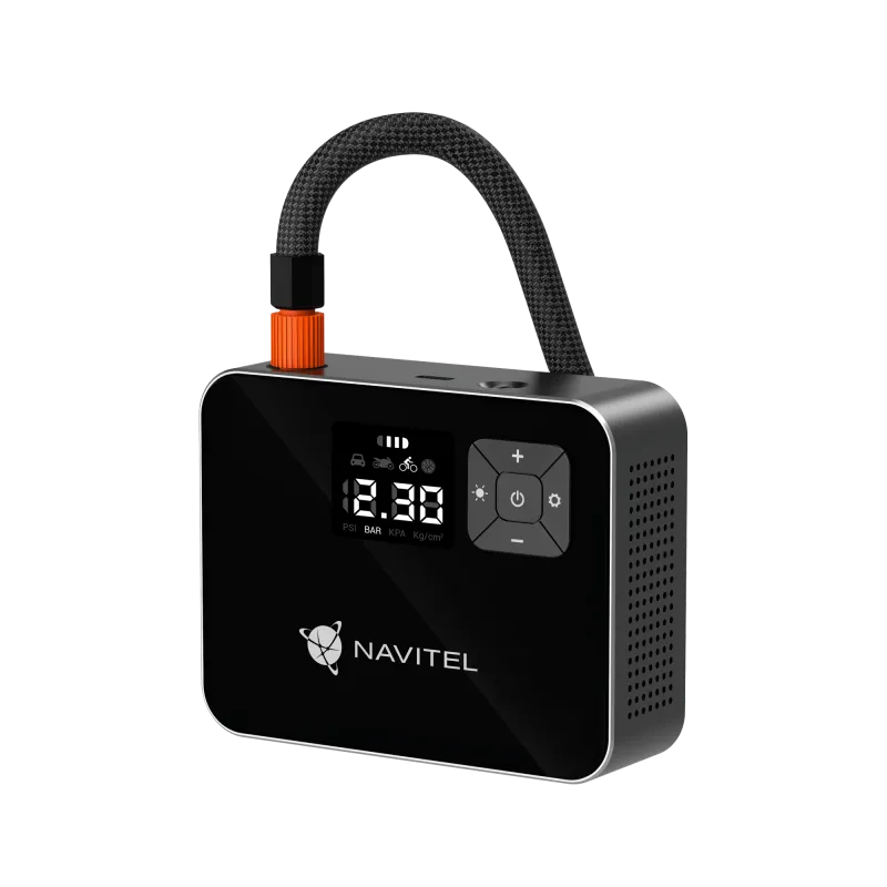 NAVITEL AIR15 AL Õhukompressor Stiilne disain ja juhtmevaba töö teevad NAVITEL AIR 15 AL-ist juhtmeta õhukompressori, millel on automaatne rõhuregulaator, digitaalne manomeeter ja LCD-ekraan. AIR 15 AL võimaldab teil hõlpsalt täita auto, jalgratta ja mootorratta rehve, samuti palle või ujumismänguasju. Tänu sisseehitatud 2000 mAh Li-ion akule töötab kompressor autonoomselt – ilma vajaduseta ühendada seda pistikupessa või sõiduki elektrisüsteemi.