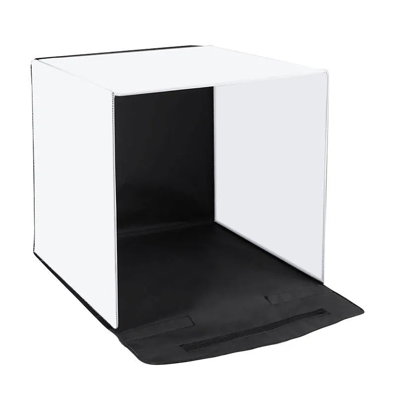 Telgil on avatav ülemine kate, et saaksid fotosid teha ka ülalt. Komplektis on ka erinevat värvi fototaustad, et saaksid värvilahendust hõlpsasti oma konkreetsele tootele kohandada.