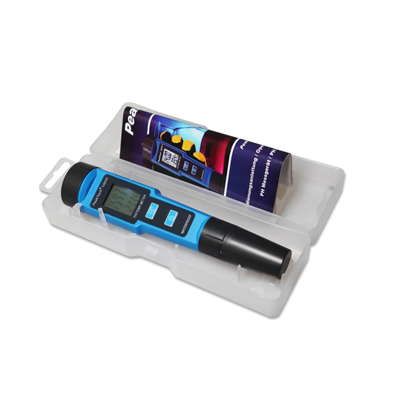 Mugav mõõteseade pH ja temperatuuri jaoks. LCD-ekraan (max. 1999) taustvalgustusega. Samaaegsed mõõteväärtused kahekordse ekraani kaudu. Käepärane korpuse disain vahetatava sondiga.