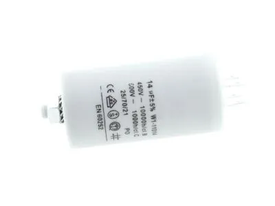 Ümar kondensaator tulekindlas korpuses . Tugeva isolatsiooniga. 2 konnektorit(6,4x0,8mm ) ja M8 kruvi-kinnitus. Rakendused: 50/60Hz lampidele ja mootoritele.