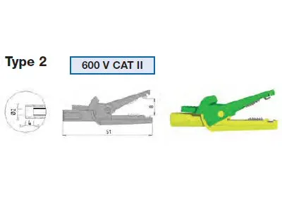 Isoleeritud krokodill 2mm otsale ; CAT II 600V ; maks. 10A; IEC61010-031, must