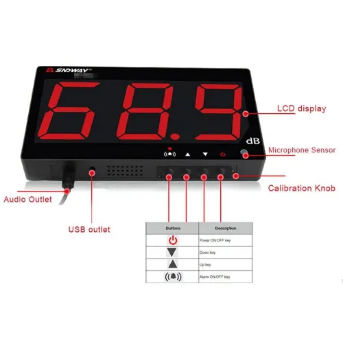 Mõõtmisvahemik : 30 / 130dBEkraan vilgub ja summer piiksub alarmi puhul.Kasuta seadet müra mõõtmiseks nii sees kui väljas.Korpuses asuvatest aukudest saab seinale riputada