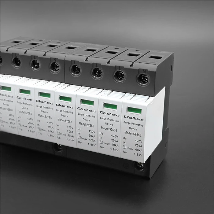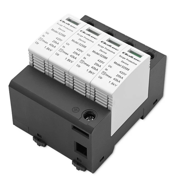 Qoltec brand surge arresters are equipped with high voltage sensors and a 3-stage DC switch. The protection consists of a base part and plug-in protection modules. It is suitable for use in photovoltaics. In addition, the product is characterized by :