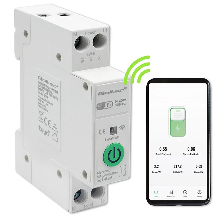 Qoltec Wi-fi DIN rail relay with electricity meter 63A TUYA SMART LIFE