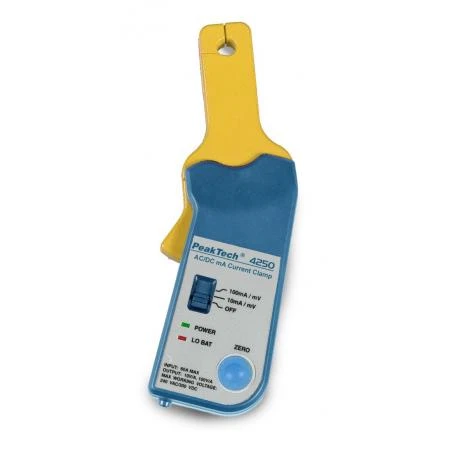 PeakTech® 4250 ampertangid on signaalimuundur, mis võimaldab teie multimeetriga mõõta alalis- ja vahelduvvoolu tugevust väärtuseni kuni 60A sagedusel kuni 20kHz.