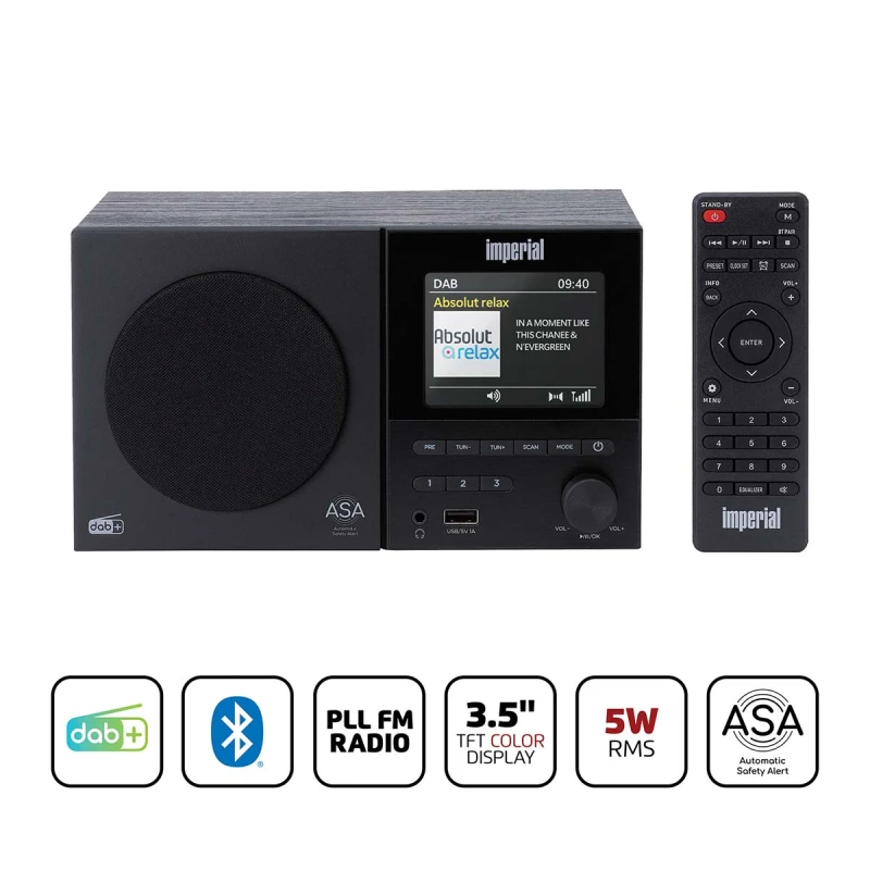 Imperial DABMAN 120 (DABMAN-120BK) on kaasaegne digiraadio, mis ühendab klassikalise puitkorpusega disaini täiustatud vastuvõtutehnoloogiaga. See on loodud pakkuma kvaliteetset heli nii DAB+ kui ka FM-saadete jaoks, pakkudes mitmekülgset ja stiilset lahendust igapäevaseks kuulamiseks.
