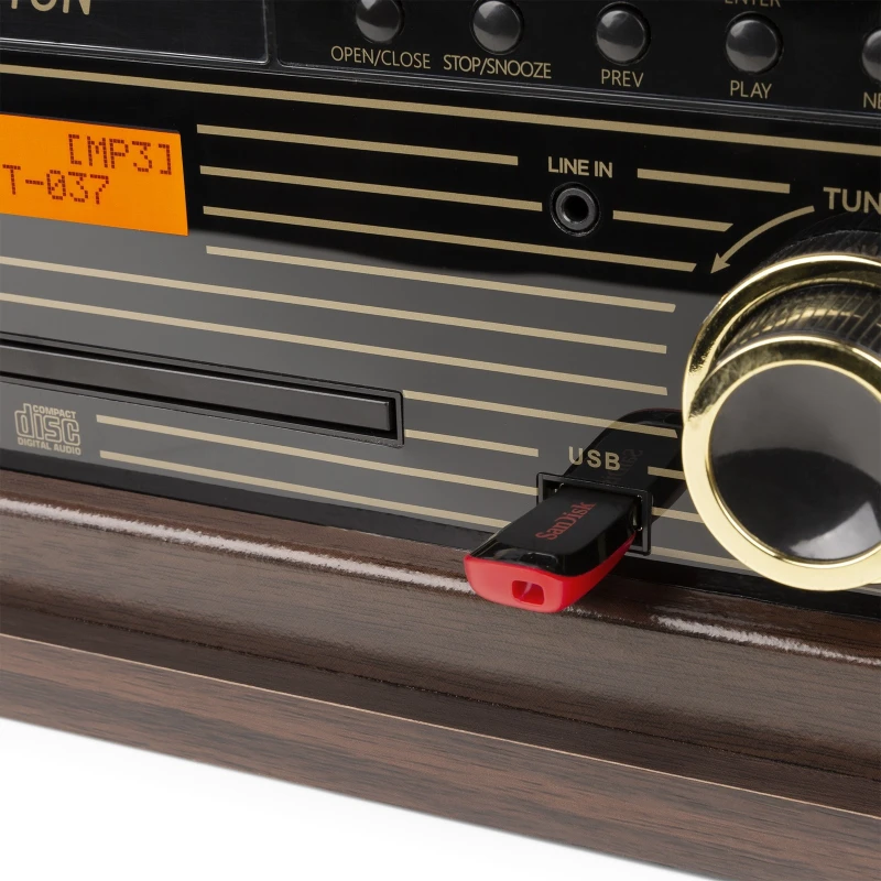 - Toetab mitut formaati: vinüülplaadid, CD-d, kassetid, FM- ja DAB+ raadio, USB taasesitus ja Bluetooth voogesitus.