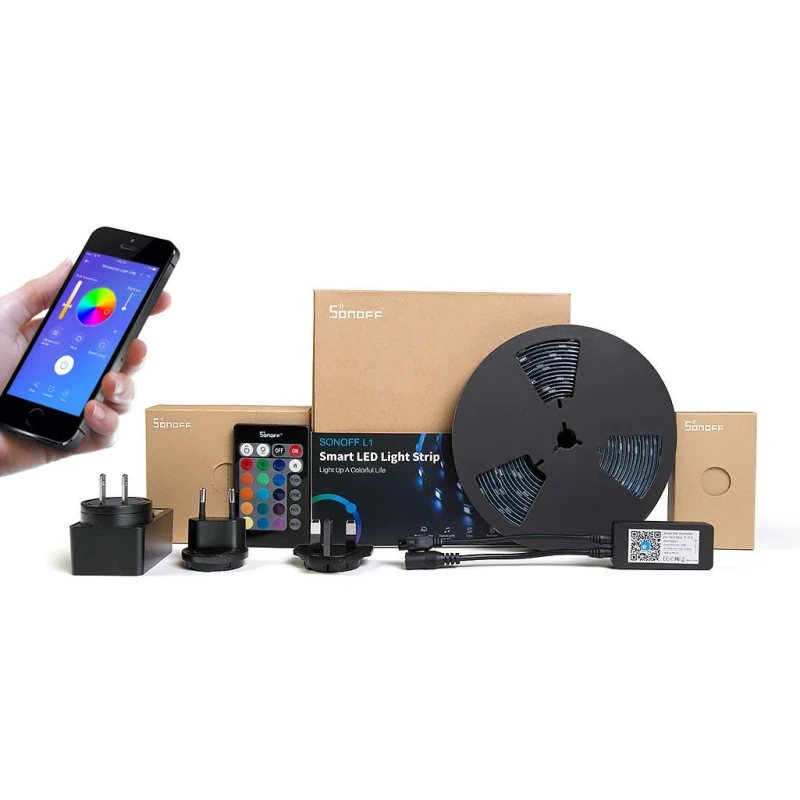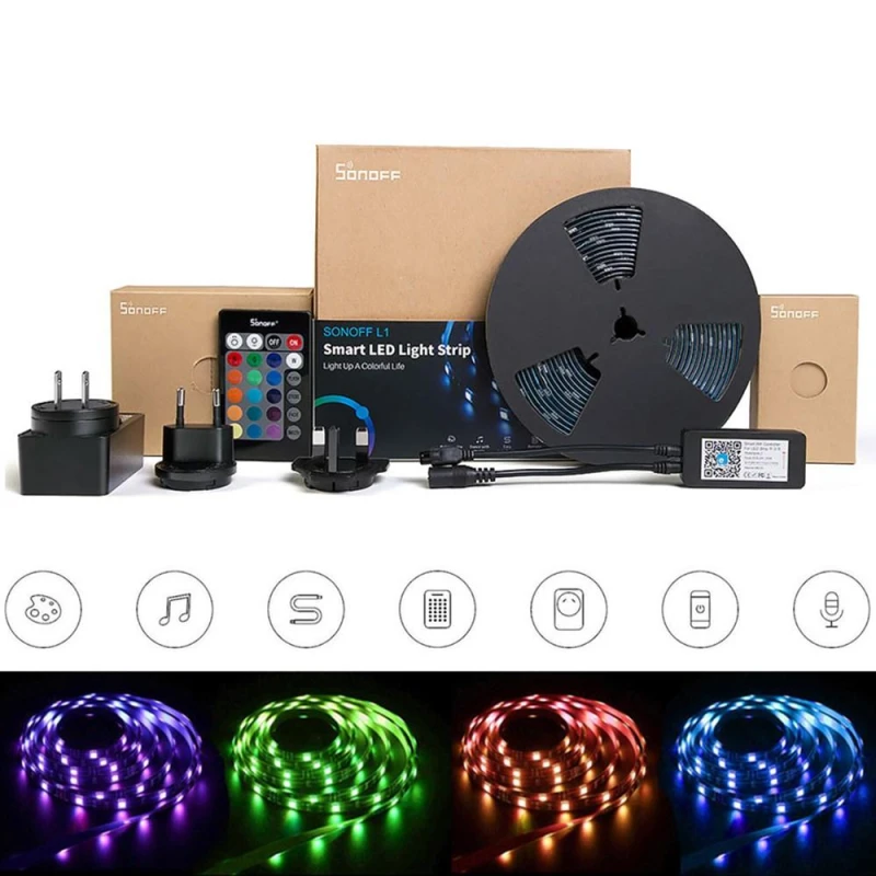 SONOFF L1 saab juhtida kaugjuhtimispuldi, EWeLinki rakenduse või hääle abil Amazon Alexa või Google Assistantiga. Riba ühildub Google Nestiga. EWeLinki abil saate valida kuni 12 erinevat LED-riba režiimi, et ühendada soovitud valgustus, seadistada taimerid, skriptid ja jagada riba pere või sõpradega. Nautige oma muusikaga värvivahetust ja rütmilist vilkumist, samuti seadke oma mobiiltelefoni kaamera soovitud objektile, jäädvustage selle värv, koputage ekraani ja värv sünkroonitakse teie LED-ribaga.