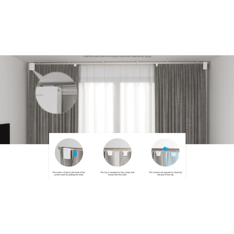 - Lihtne paigaldus: muudab tavalised kardinad nutikateks kardinateks sekunditega, ilma tööriistade või muudatusteta.