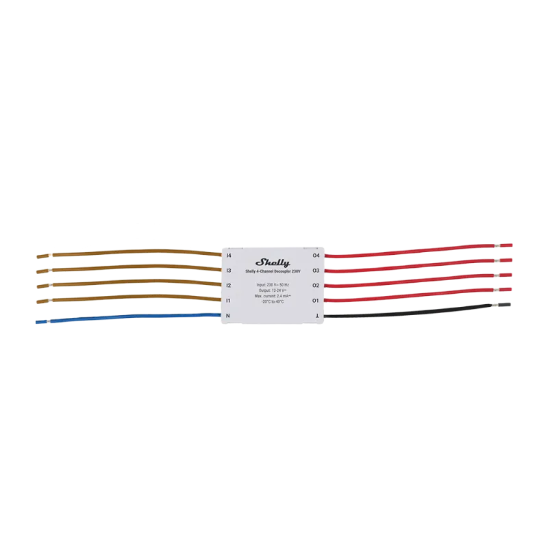 Shelly 4-Channel Decoupler 230V (SH-4CH-DECOUPLER) on kompaktne moodul, mis on loodud traditsiooniliste 230V vahelduvvoolu lülitite ohutuks ja usaldusväärseks ühendamiseks kaasaegsete alalisvoolutoitega nutiseadmetega. See kasutab optopaari, et tagada oluline galvaaniline isolatsioon, muutes kõrgepinge vahelduvvoolu signaalid usaldusväärseteks alalisvoolu päästikuteks.