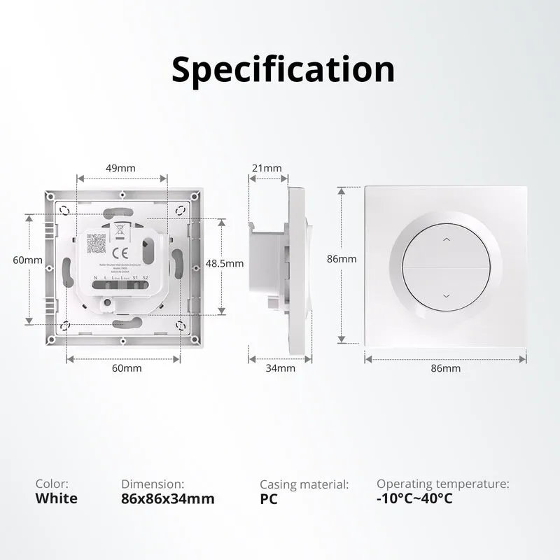 SONOFF Fusion Series rulookardina seinalüliti korpus (SF-ERBS) on vastupidav lisaseade, mis on spetsiaalselt loodud SONOFF MINI-RBS ja MINI-ZBRBS rulookardina juhtimismoodulite paigaldamiseks. Selle üliõhuke profiil ja vastupidav konstruktsioon muudavad selle ideaalseks paigaldusteks, kus paigaldusruum on piiratud.