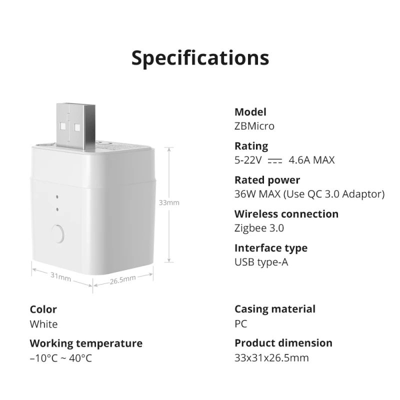 Sonoff ZBMicro on tõhus Zigbee USB adapter, mis võimaldab teil täielikult automatiseerida ja kaugjuhtida USB seadmeid teie nutikodus. See toode on varustatud Zigbee 3.0 standardiga.