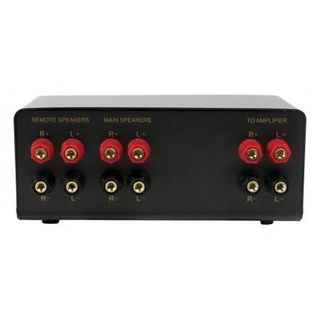 This switch/control unit can be placed between the amplifier output and two loudspeaker sets. This enables you not only to control each set separately but also to control the volume of the loudspeakers separately.