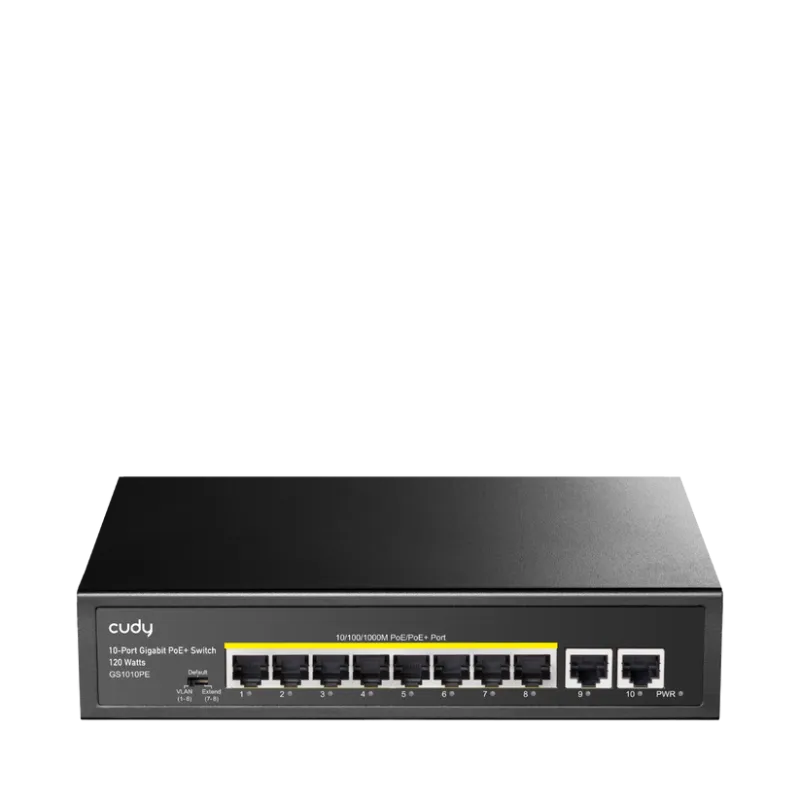 Cudy GS1010PE on 10 pordiga Gigabit PoE+ lüliti, mis on loodud väikeste ja keskmiste võrkude jaoks. Tänu 8 PoE+ pordile ja 120 W koguvõimsuse eelarvele toidab see usaldusväärselt olulisi võrguseadmeid, nagu IP-kaamerad ja pääsupunktid.