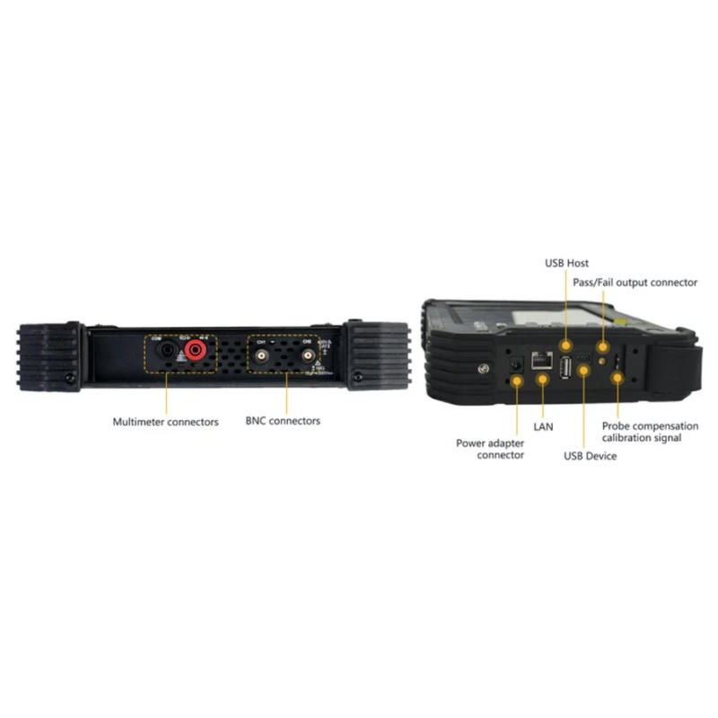 Tarvikud: Ostsilloskoop, 7,4 V 8000 mAh aku, 2 x testsond ostsilloskoopile, 2 x testsond multimeetrile, toitejuhe + toiteadapter, USB-kaabel, BNC-SAM adapter, CD tarkvara ja juhendiga (inglise keeles), kiirjuhend (inglise keeles) ja kott.
