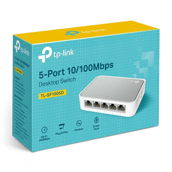 TL-SF1005D Fast Ethernet Switch pakub 5 10/100Mbps automaatse läbirääkimisega RJ45 porti. Kõik pordid toetavad Auto MDI/MDIX funktsiooni, mis kaotab vajaduse ristkaablite või Uplink portide järele. Mitteblokeeriva lülitusarhitektuuriga TL-SF1005D edastab ja filtreerib pakette täiel kiirusel, tagades maksimaalse läbilaskevõime. 2K Jumbo frame abil on suurte failide edastamise jõudlus oluliselt paranenud. IEEE 802.3x voolu juhtimine Full Duplex režiimis ja vasturõhk Half Duplex režiimis leevendavad liiklusummikuid ja muudavad TL-SF1005D töökindlaks.