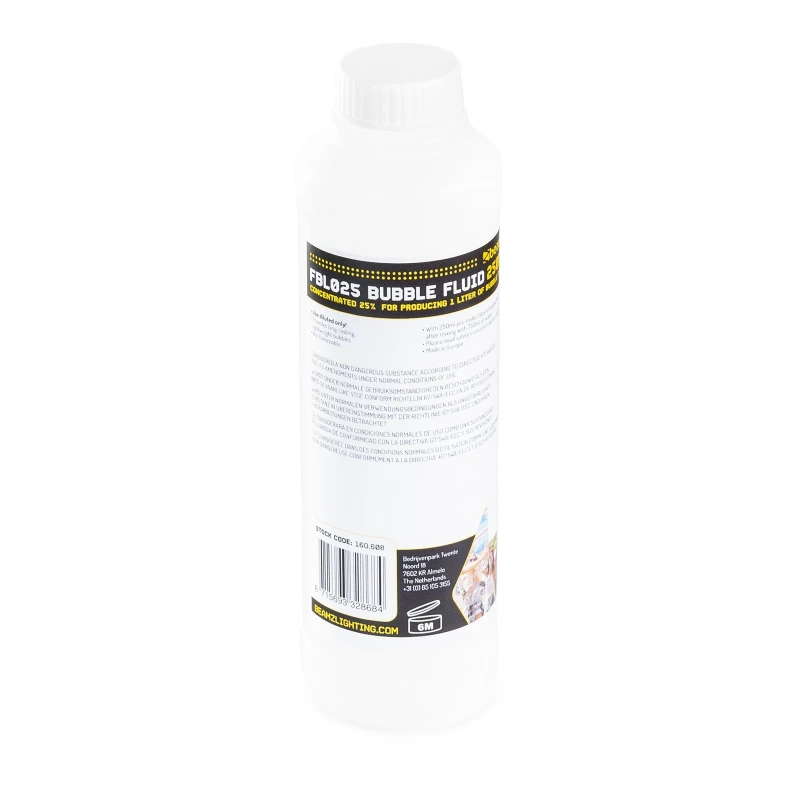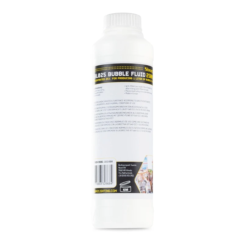 250ml kvaliteetne kontsentraat 1 liitri mullivedeliku valmistamiseks. See kontsentraat on ette nähtud vees segamiseks allpool näidatud protsendimääras. Sobib peaaegu igat tüüpi mulliefektiga masinatele.