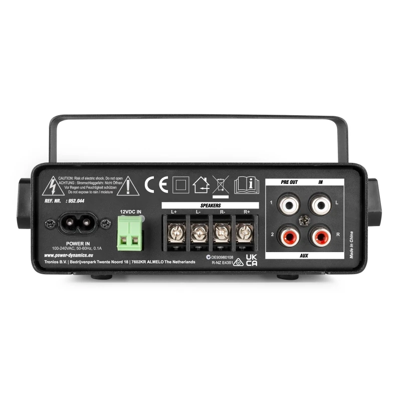 (12V auto) - mobiilne multifunktsionaalne võimendi - MP3-mängija USB-pordi ja MicroSD-pesaga - BT heli voogesitus - 30W võimendi - Toide: 220VAC või 12Vdc - 2x mikrofoni sisendit koos helitugevuse reguleerimisega - AUX helitugevuse regulaator - helitugevuse juhtseade - Ideaalne mobiilseks kasutamiseks (12V)