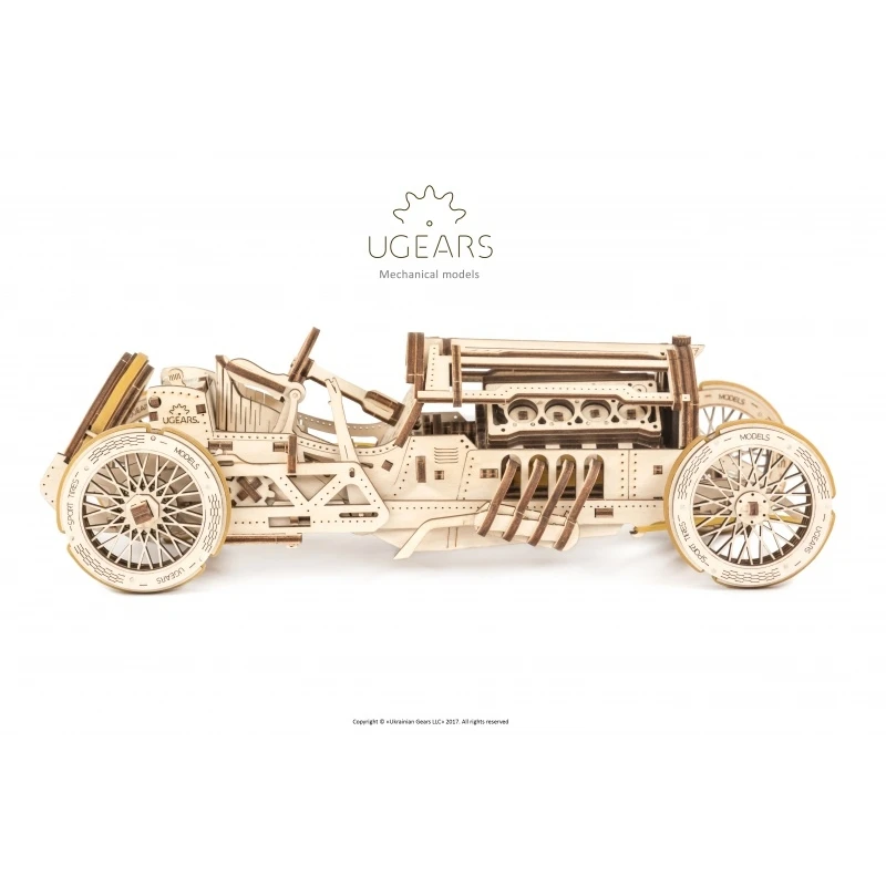 Ugears on tulnud välja uhiuue Grand Prix U-9 mudeliga! Mudeli kapoti all on V8 mootor, võimas radiaator ning 16 töötavat klappi. Auto tööle panemiseks kasuta auto eesosas olevat vänta ning auto sõidab nii edasi, kui ka tagasi. Auto disain on pärit 20-nda sajandi alguses toimunud päris esimese Grand Prix võidusõidul osalenud autodest.