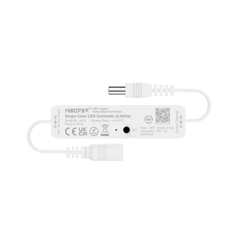 MiBoxer MLR1-MINI on kompaktne ühekanaliline 2,4 GHz kontroller, mis on loodud ühevärviliste LED-ribade täpseks juhtimiseks. Selle üliväike vormitegur ja "plug-and-play" disain teevad sellest tõhusa lahenduse hämardusfunktsioonide integreerimiseks erinevatesse LED-valgustuslahendustesse.