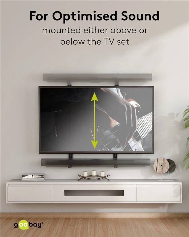 Goobay 70828 (SKU: 70828-GBY) on universaalne kinnituslahendus, mis on loodud enamiku suuremate kaubamärkide heliribade turvaliseks paigaldamiseks, pakkudes paindlikke paigutusvõimalusi kodustele meelelahutussüsteemidele.